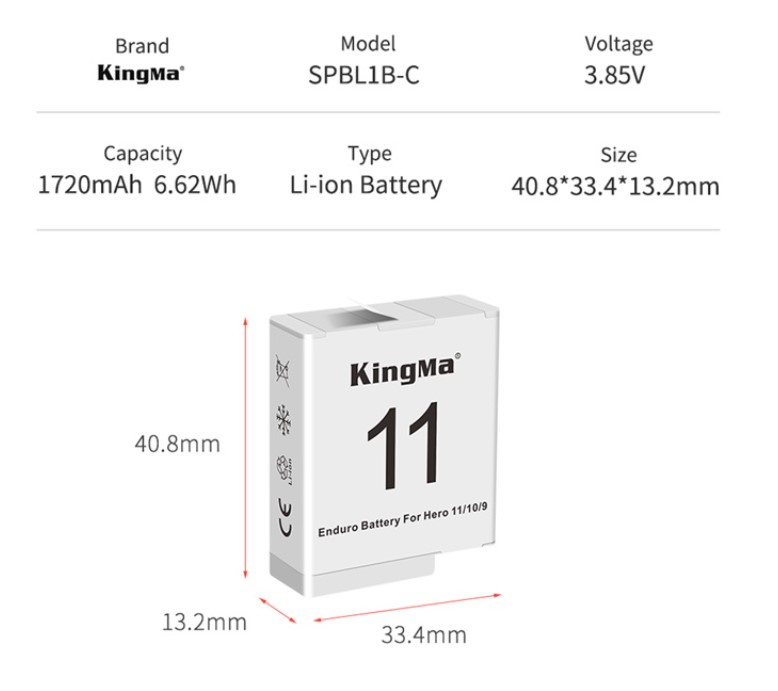 KingMA Enduro battery для gopro hero 12 11 10 9